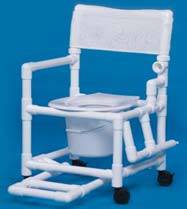 A deluxe commode model offers all the support, security, and comfort that are hard to find elsewhere. It comes with a soft seat available in gray or navy. The comfortable mesh back rest and leg rest comes available in 12 standard colors. This model also has a weight capacity of 300 lbs. The shower commode chair is perfect for quick and easy access in and out of the shower. It features an extra-strength anodized aluminum frame and 4 inch swivel caster wheels with rear wheel locks. This model will fit over most toilets. It also features a padded vinyl seat with a commode pail, waterfall plastic armrests, and with a weight of only 13 lbs, this model is highly portable. It has a weight capacity of 260 lbs.