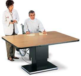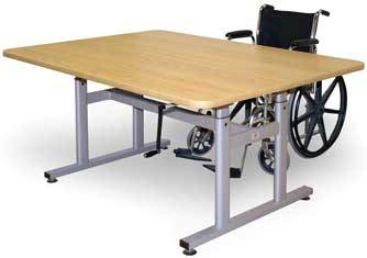 The rehab work tables in our inventory have countless applications in the healthcare profession. The work tables we supply will accommodate patients in wheelchairs, patients with mobility aids, and can easily be adjusted to conform to the needs of every patient. Each work tables is easy to move, simple to adjust, and the crank handles on the rehab work tables are retractable so they won’t become a hazard or obstacle. The work tables we carry are perfect for rehabilitation programs and physical therapy procedures.